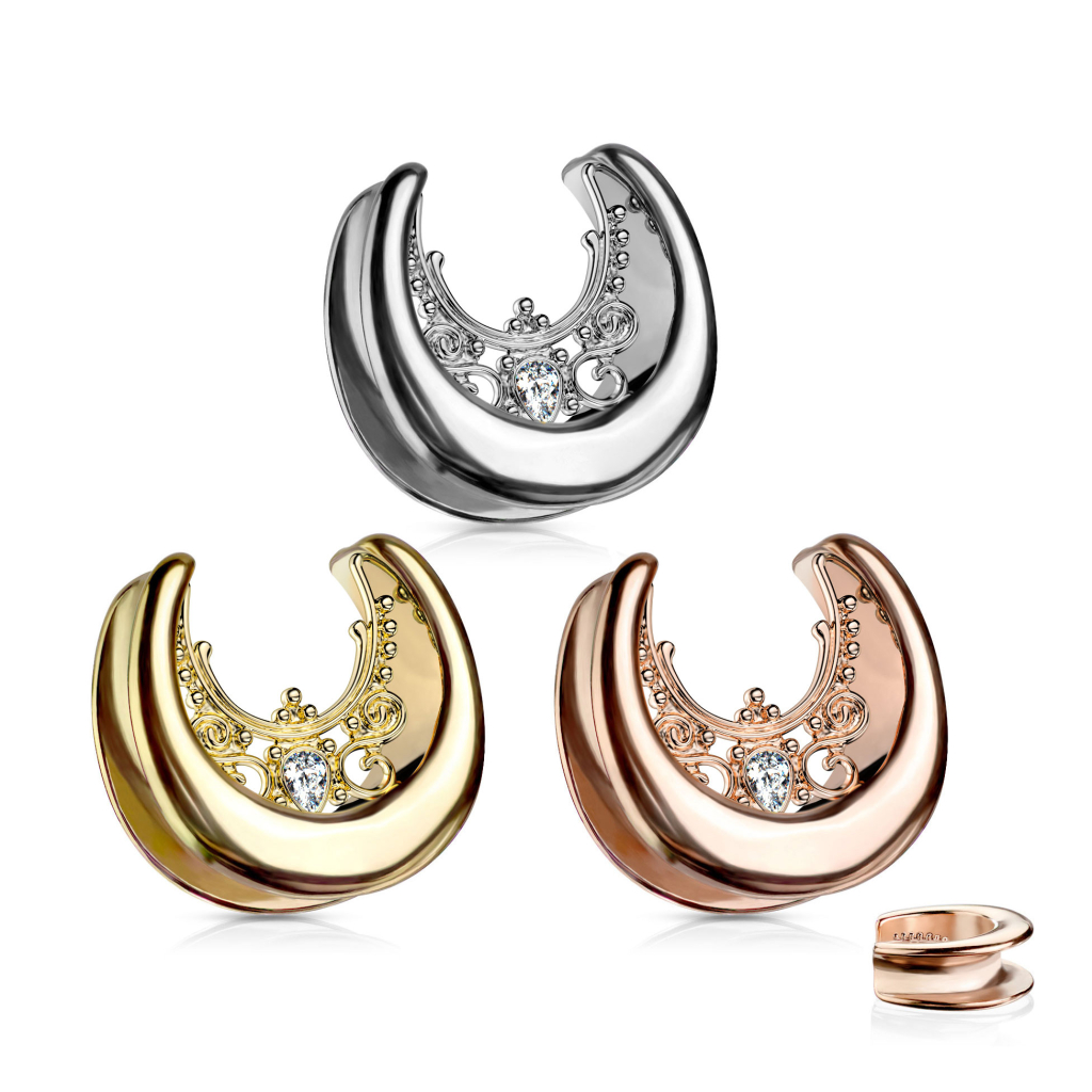 Puedes conseguir este spreader en varios tamaños y colores. Debes tener una dilatación de al menos 10 mm de diámetro para poder llevar el modelo más pequeño. No obstante, aunque tu dilatación sea mayor, podrás seguir utilizando el modelo más grande de 25 mm. Los extremos del spreader están curvados hacia dentro y proporcionan un buen agarre. Por ese motivo, aunque tu dilatación sea más grande, la joya quedará ajustada en tu lóbulo de forma segura.