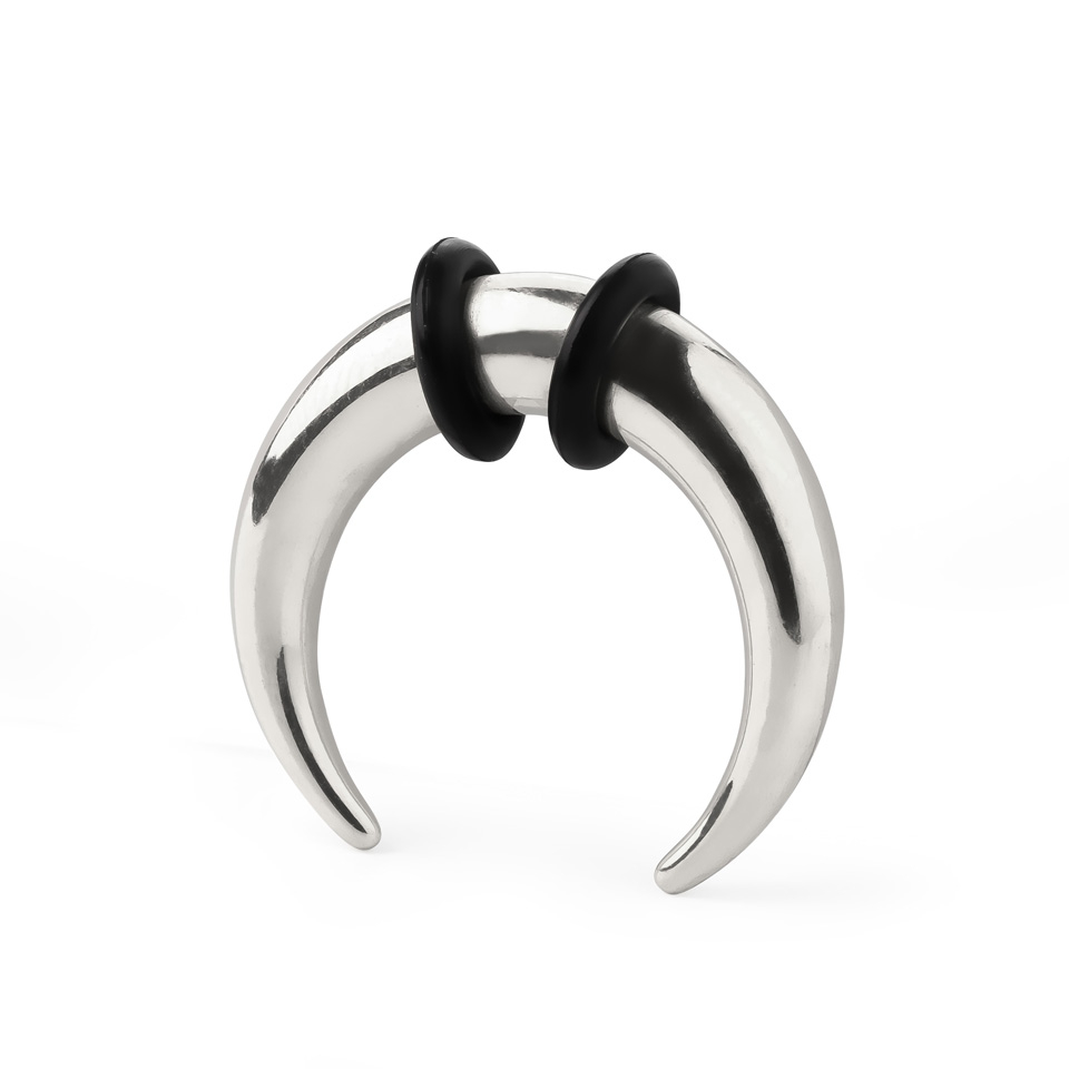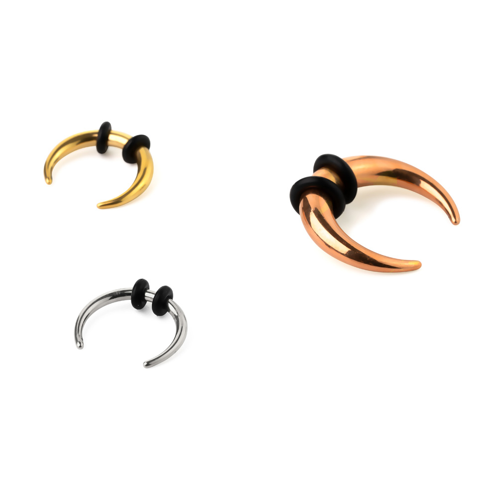 Este taper tiene forma de C. Está hecho en acero quirúrgico y está equipado con dos aretes.
