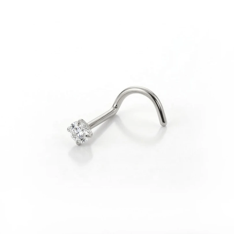 Elige entre un grosor de barra de 0,8 mm o 1 mm, dependiendo del método que se usó para hacer tu piercing. También deberás decidir si quieres un brillante de 2 mm o uno de 2,5 mm de diámetro. El brillante está sujeto mediante cuatro pequeñas garras que evitan que se caiga. No se ha usado pegamento para montar el brillante.