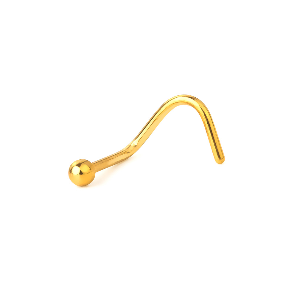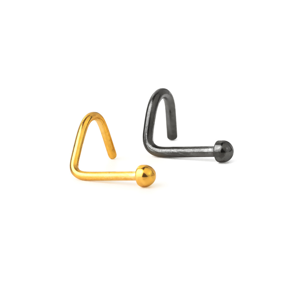 La forma de este tornillo es ideal para quienes les gusta cambiar de joya a menudo. Simplemente debes colocar el extremo por la perforación y girar la joya ligeramente para que se pueda asentar al interior de la nariz.