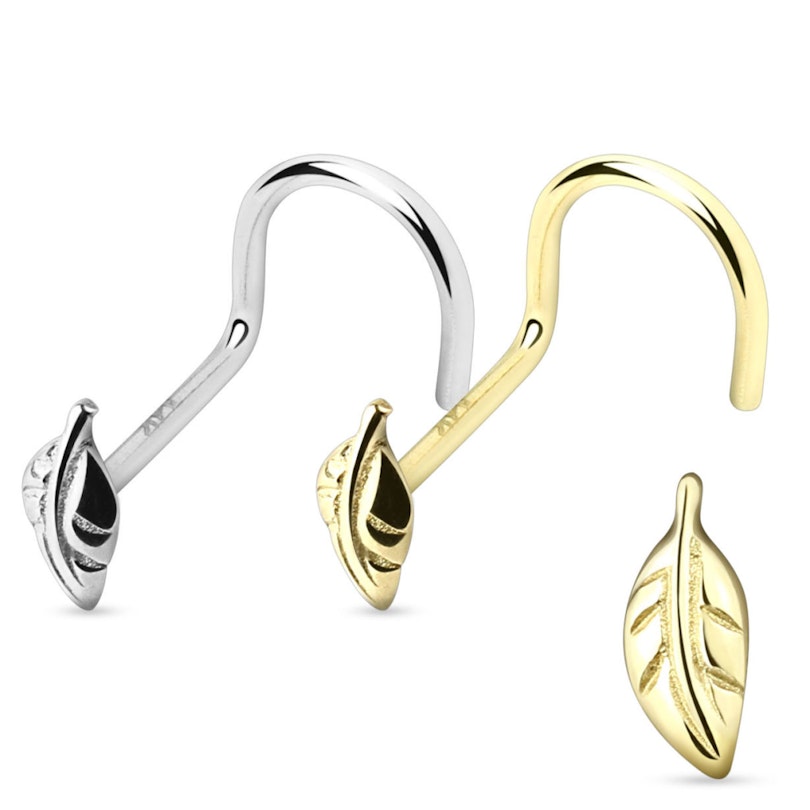 Tornillo para la nariz en oro de 14 quilates con hoja