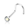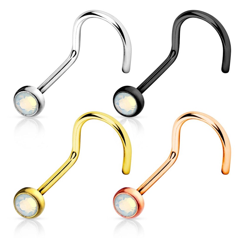¿Estás buscando una joya muy bonita y nueva para tu piercing en la nariz? Descubre este dulce tornillo con una fantástica opalita en su extremo superior. Se trata de una muy buena alternativa a una simple barra para la nariz, ya que se ajusta estupendamente a la nariz y no tiene ninguna parte que pueda dañar las fosas nasales. Este tonillo se debe colocar con cuidado, y cuando está en su sitio es casi imposible que se pueda salir.