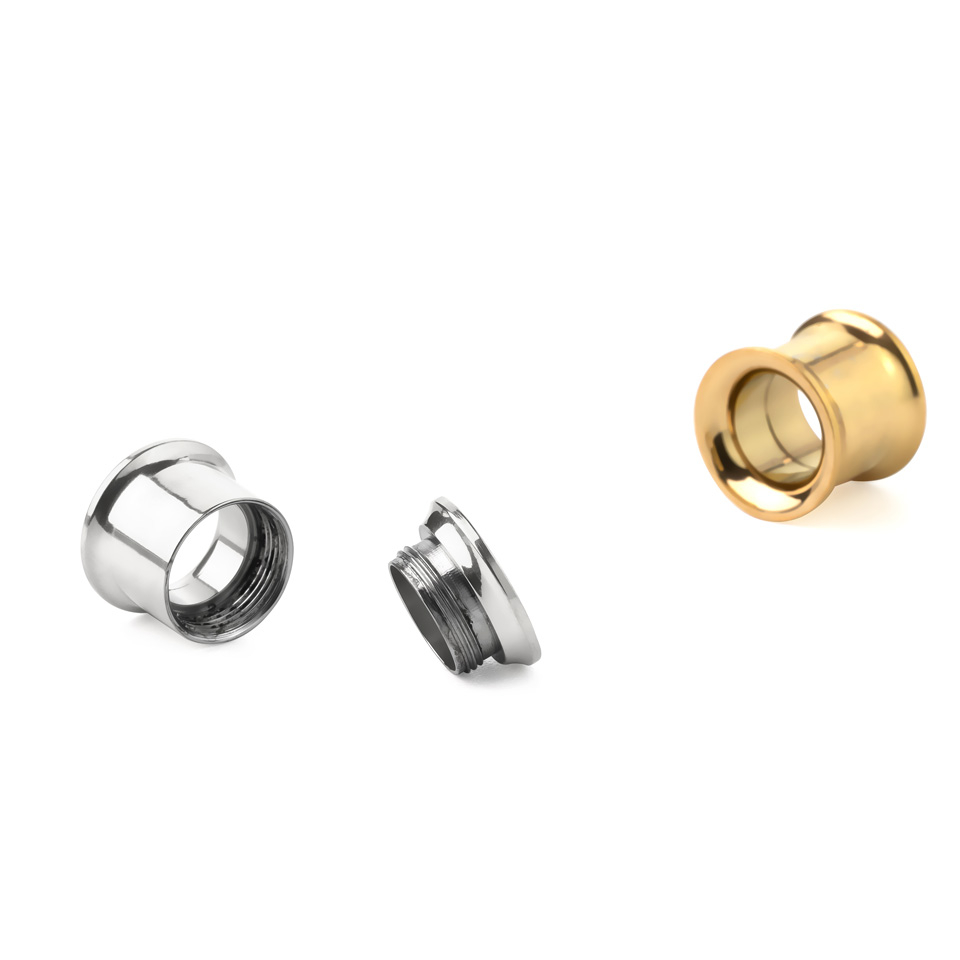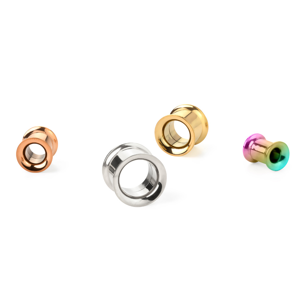 Descubre un bonito túnel en un diseño único muy elegante para un look clásico en tus dilataciones. Este túnel está hecho en acero quirúrgico al que se le ha aplicado un revestimiento que le ha dado su bonito color. El acero quirúrgico es uno de los materiales más utilizados en la joyería de perforación, y el chapado en oro le da un look muy lujoso.