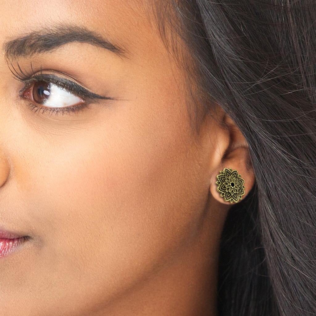 El diseño de esta flor está inspirado en una flor de loto con muchas hojas en color dorado, que junto al color negro añadido posteriormente, crean un efecto muy bonito y detallado. El centro de la flor es un agujero por el que se puede ver a través de la joya.