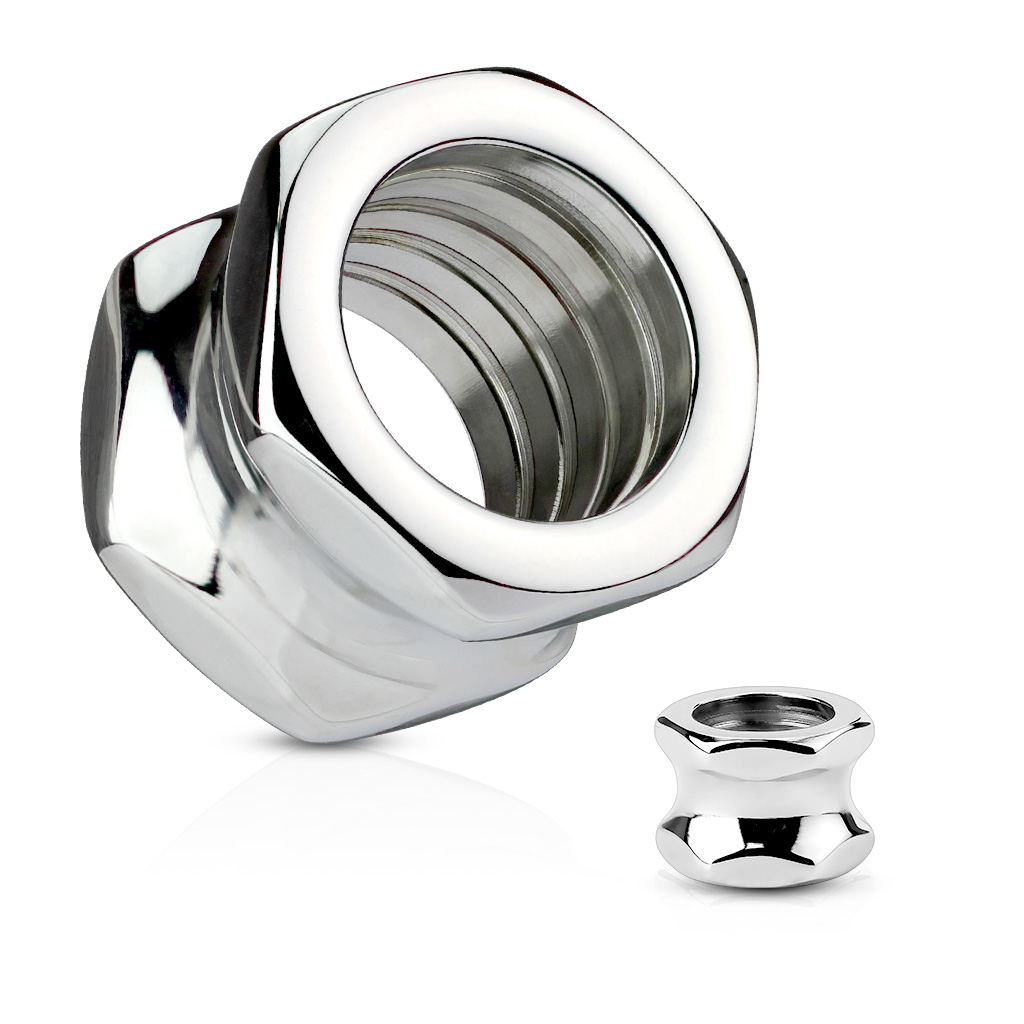 "Hexa" significa 6, que es el número de lados que tiene un hexágono, al igual que esta tuerca. Por dentro de esta puedes ver las líneas que tienen las tuercas de verdad. Está disponible en seis tamaños distintos, que van desde los 6 mm hasta los 16 mm.