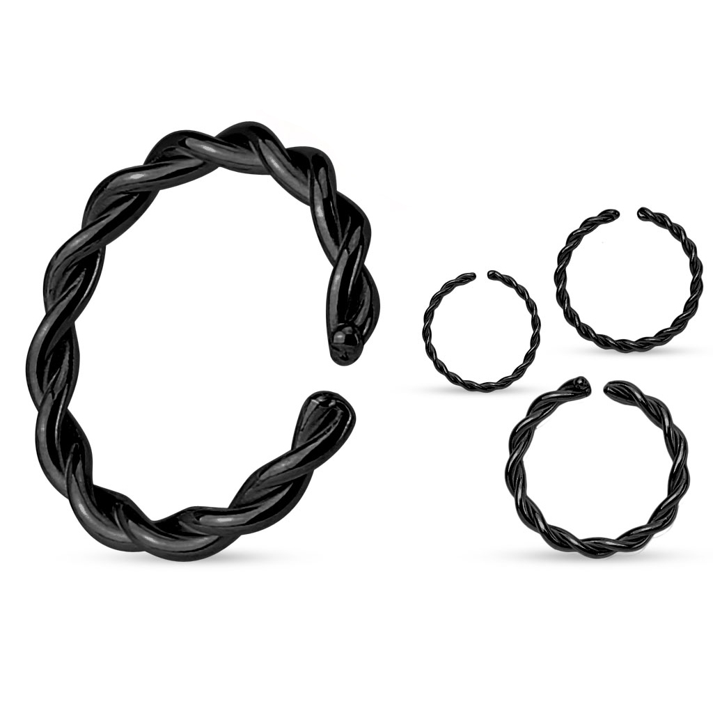Esta es una versión un poco diferente de nuestro popular aro sin fin. El aro normal consiste en una pieza de metal, en que el extremo conecta con el aro. Esta nueva versión consiste en dos piezas metálicas que han sido onduladas y que juntas tienen un efecto trenzado. Los extremos del aro tienen una pequeña soldadura, para que, al colocar la joya en tu perforación, te sea fácil de cerrar, y además, para que las piezas no se separen.