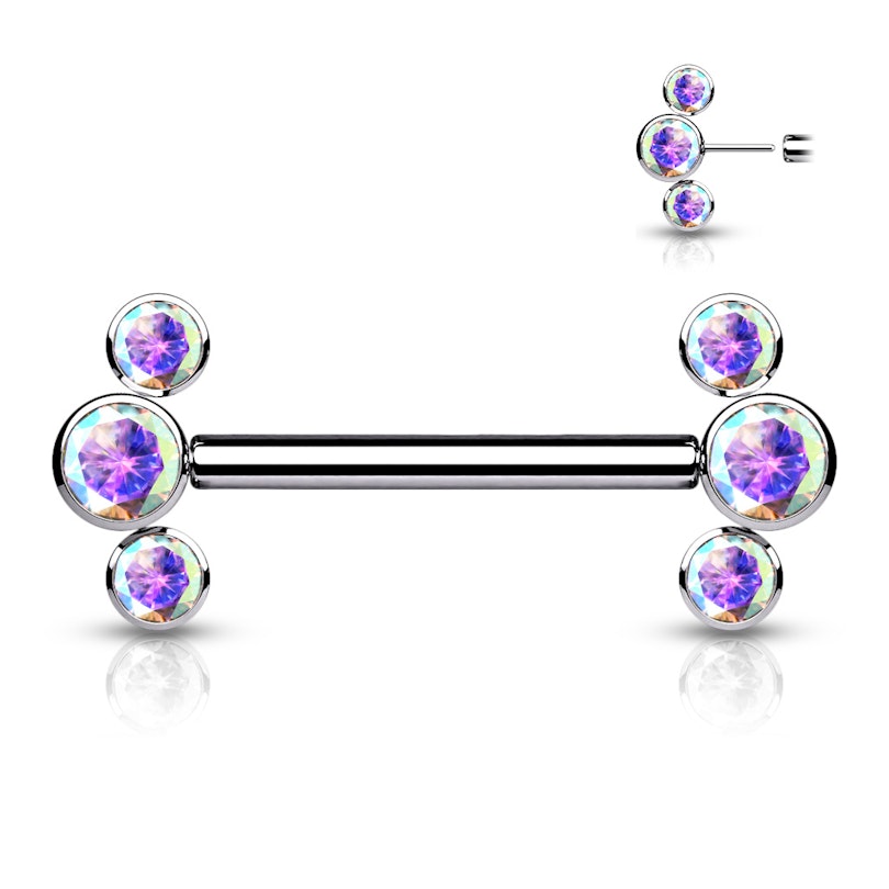 Nombre: Barra para el pezón sin rosca con 3 circonias.