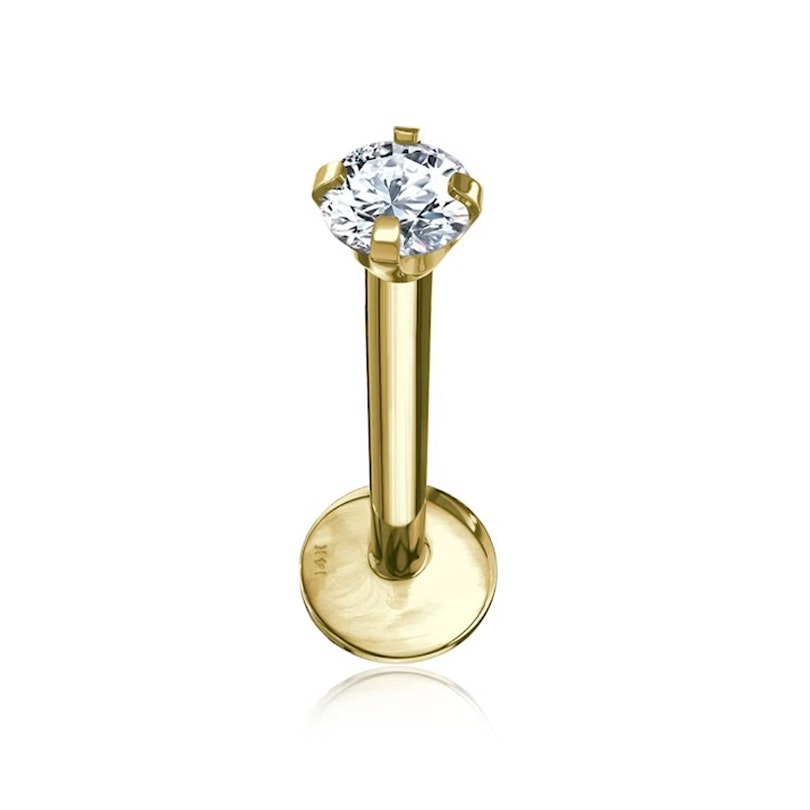 Labret en oro de 14 quilates con rosca interna y brillante