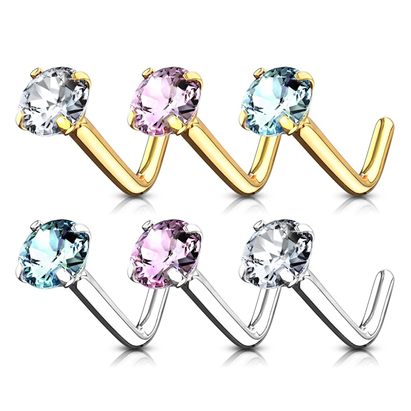 Esta joya para la nariz está doblada más o menos por la mitad de la barra, lo que asegura que la joya se mantenga bien en su sitio, sin que haya la posibilidad de que se pueda salir ni caer. El diseño es muy inteligente y práctico, más que cualquier otra simple barra para la nariz.